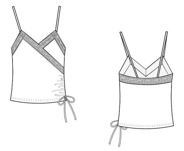 Ce Modèle est un haut Top à avec bretelles larges et un joli décolleté V orné de dentelle.C'est un style faux cache-coeur noué